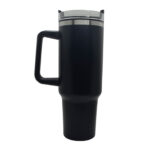 TOMATODO NEGRO DE ACERO INOXIDABLE (SOLO AFUERA) DE DOBLE PARED (INCLUYE SORBETE COLOR TRANSPARENTE) MATERIAL EXTERNO: ACERO INOXIDABLE MATERIAL INTERNO: PLÁSTICO DIMENSIONES: (10X28CM) 1200 ml