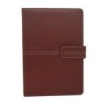 LIBRETA CON BROCHE COLOR MARRON, CON 120 HOJAS (NO INCLUYE LAPICERO) MATERIAL EXTERNO: CUERINA MATERIAL INTERNO:CUERINA DIMENSIONES: A5 / 21.3 x 15 cm