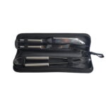 ESTUCHE DE SET DE PARRILLA: INCLUYE: PINZA, CUCHILLO Y TENEDOR / MATERIAL DE UTENSILIOS: TODO 100% ACERO INOXIDABLE (SIN ACCESORIOS PLÁSTICOS). MEDIDA EL ESTUCHE: 37 X 8.6 CM